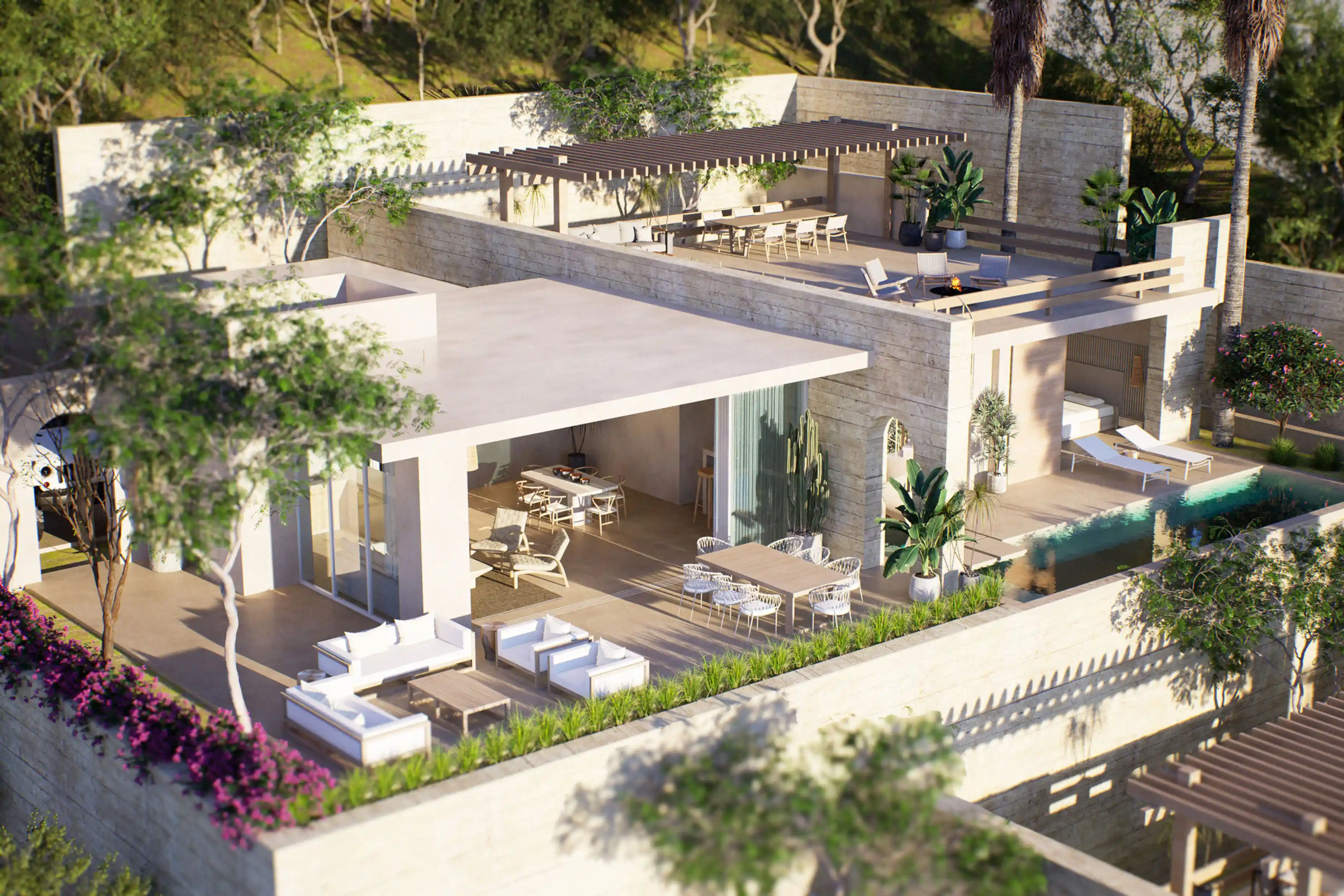 A set of nine beautiful little houses that emulate the traditional homes of the Mexican countryside and desert architecture, built on 500 m2 lots, incorporating all the concepts of bioclimatic architecture, taking advantage of the view and valley breeze, all with spectacular mountain views.